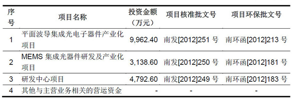 博創(chuàng)科技招股說明書顯示,本次募集資金主要用于三個方面:一是平面波導(dǎo)集成光電子器件產(chǎn)業(yè)化,需資金9962.40萬元;二是MEMS集成光器件研發(fā)及產(chǎn)業(yè)化,需資金3138.6萬元;三是研發(fā)中心項目,需資金4792.60萬元。若實際募集資金不足,在不改變擬投資項目的前提下,董事會可對上述項目的擬投入募集資金金額進行調(diào)整,不足部分由公司自行籌措資金解決。