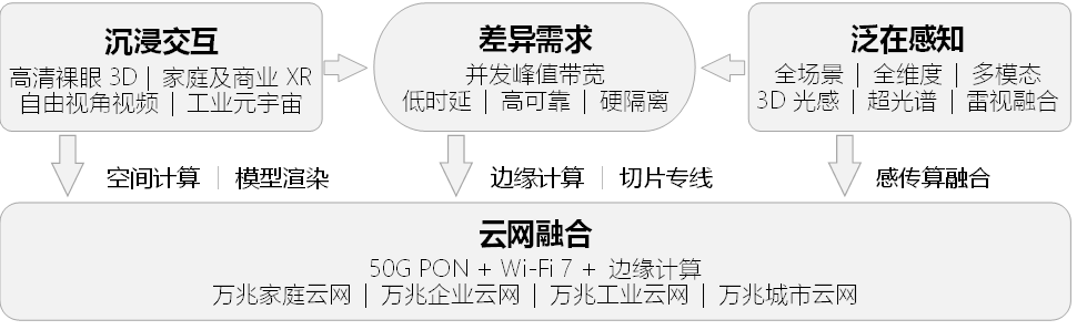 進(jìn)入全光萬兆時(shí)代,用戶將可以在家中體驗(yàn)到裸眼3D顯示、自由視角觀影及直播、極速云存儲(chǔ)(NAS)和極速云游戲等數(shù)字服務(wù)。企業(yè)通過50G PON可以實(shí)現(xiàn)Wi-Fi 7回傳,滿足如混合現(xiàn)實(shí)(MR)等新型終端并發(fā)使用和無障礙在線協(xié)作,隨時(shí)調(diào)用云端渲染等邊緣算力服務(wù),提升使用體驗(yàn)。全光萬兆還可以增強(qiáng)城市數(shù)字基礎(chǔ)設(shè)施,發(fā)揮綜合承載能力,提供高可靠的專網(wǎng)服務(wù),支持城市智慧綜合桿的建設(shè)。