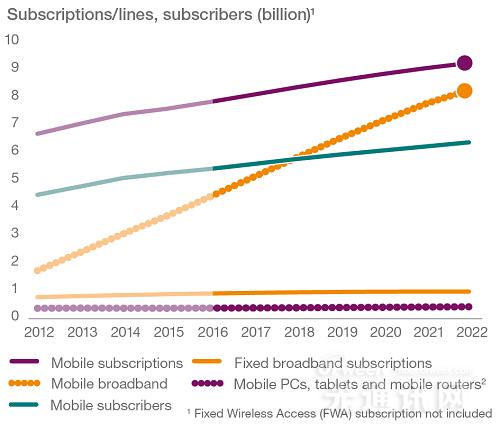 2022年全球?qū)⒂?9億移動(dòng)用戶,其中90%將使用移動(dòng)寬帶。在這個(gè)時(shí)候,全球?qū)⒂?1億獨(dú)立用戶。
