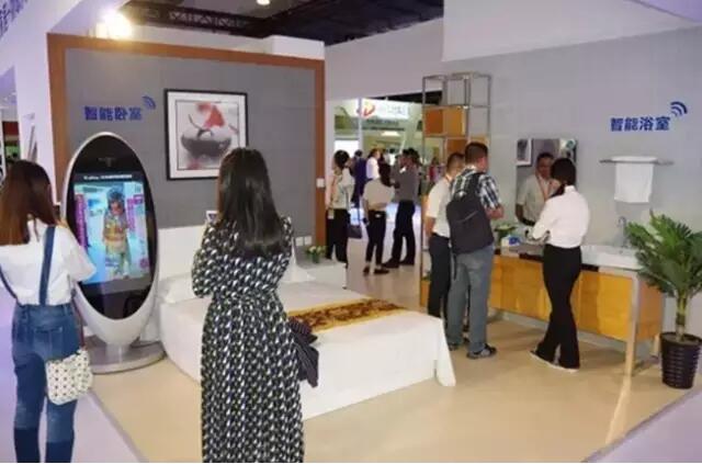 在2016 北京國際信息通信展上,觀眾在亨通展臺體驗各種智慧社區(qū)和物聯(lián)網(wǎng)應用。