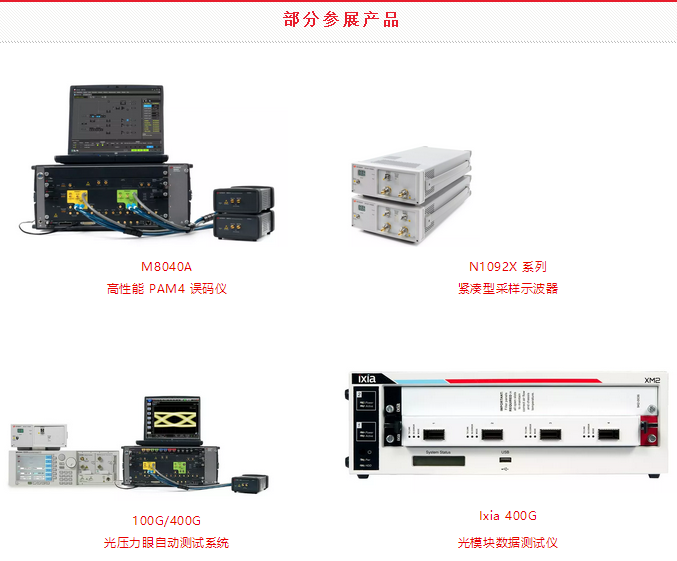 是德科技作為領先的測試測量設備廠商,也攜最新產(chǎn)品與方案驚艷亮相。具體包括其最新的關于在數(shù)據(jù)中心應用 400G PAM4,相干測試,光接收機壓力眼測試及 PAM4 仿真和 PLTS 等測試解決方案,以下是演示方案的完整列表: