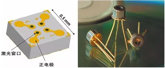 795 nm VCSEL 芯片(左)TO46封裝器件(右)
