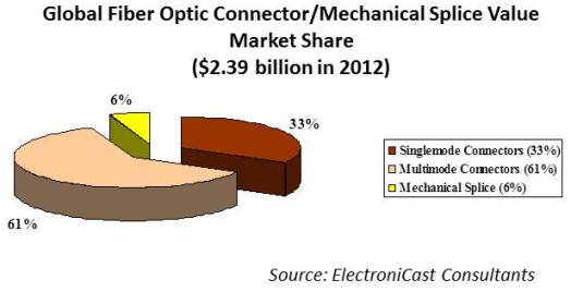 【訊石光通訊咨詢網(wǎng)】 據(jù)ElectroniCast Consultants公布的最新報告顯示,2012年光纖連接器及所有類型的機械接頭市場的銷售額達(dá)23.9億美元。而數(shù)據(jù)中心上的應(yīng)用就占了一半以上,ElectroniCas的市場調(diào)研機構(gòu)表示,到2017年將看到電信市場的大幅增長。