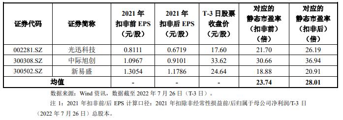 其中,公告還披露了主營業(yè)務(wù)與發(fā)行人相近的可比上市公司市盈率水平具體情況如下:
