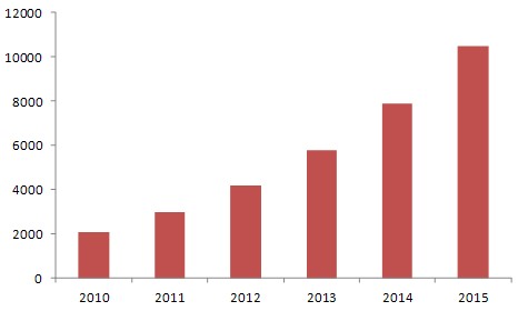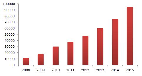 2010年,全球陶瓷套管需求量約為10.92億只,預(yù)計(jì)到2015年,這個(gè)數(shù)字將翻一倍,增至近29.4億只。