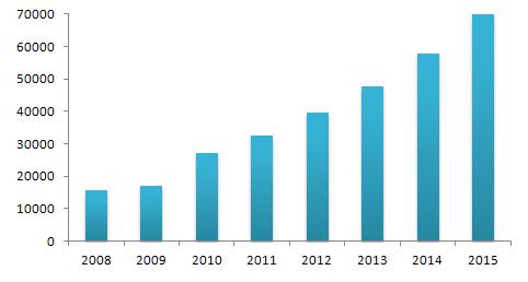 因此預(yù)計(jì)到2015年,全球光纖適配器需求量將增長(zhǎng)至23億只,年增長(zhǎng)率在21%左右。其中,中國(guó)市場(chǎng)光纖適配器需求量預(yù)計(jì)將增長(zhǎng)至7億只,其在全球市場(chǎng)中的占比將達(dá)30.4%。