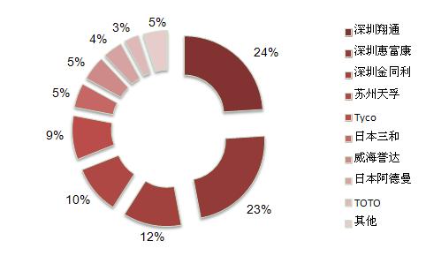 圖2 全球主要陶瓷套管廠商市場(chǎng)份額(按2011月出貨量)
