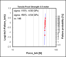 根據(jù)以上測試結(jié)果,可得到長飛公司60μm細徑保偏光纖50%拉斷概率強度為4.54GPa,應(yīng)力疲勞參數(shù)nd值為21.2,高于國際標準要求。