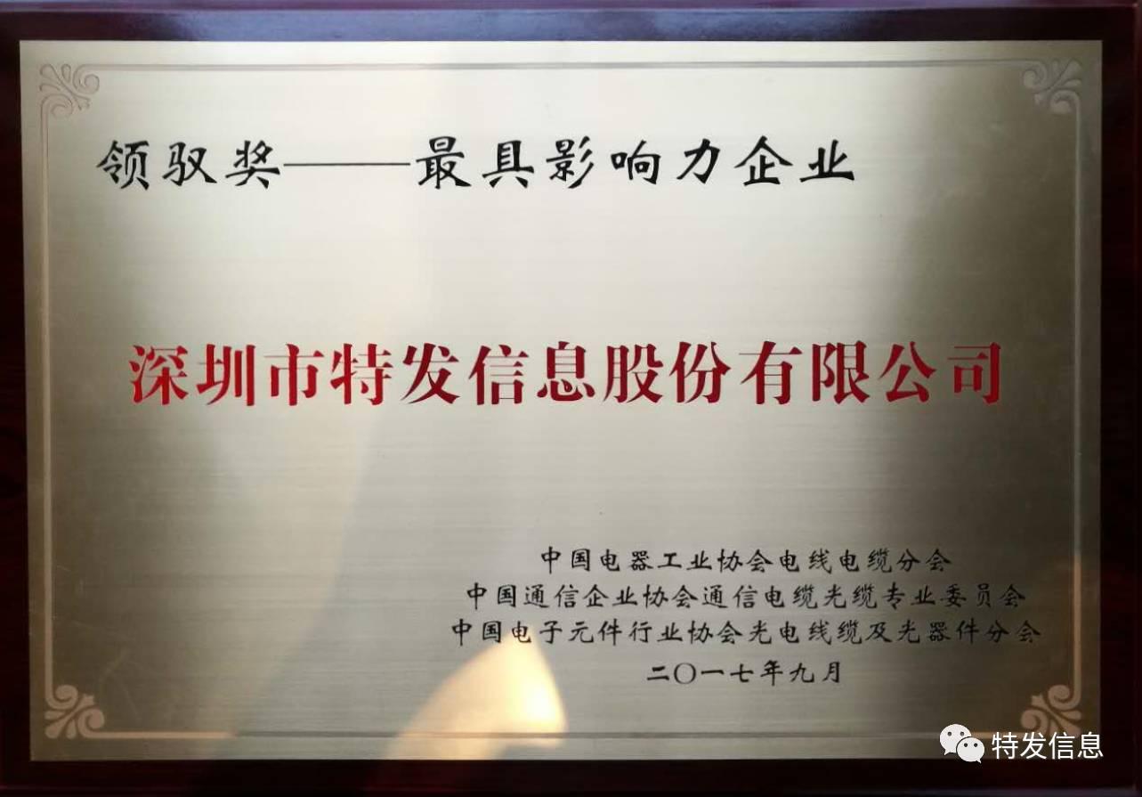 特發(fā)信息獲“最具影響力企業(yè)獎”