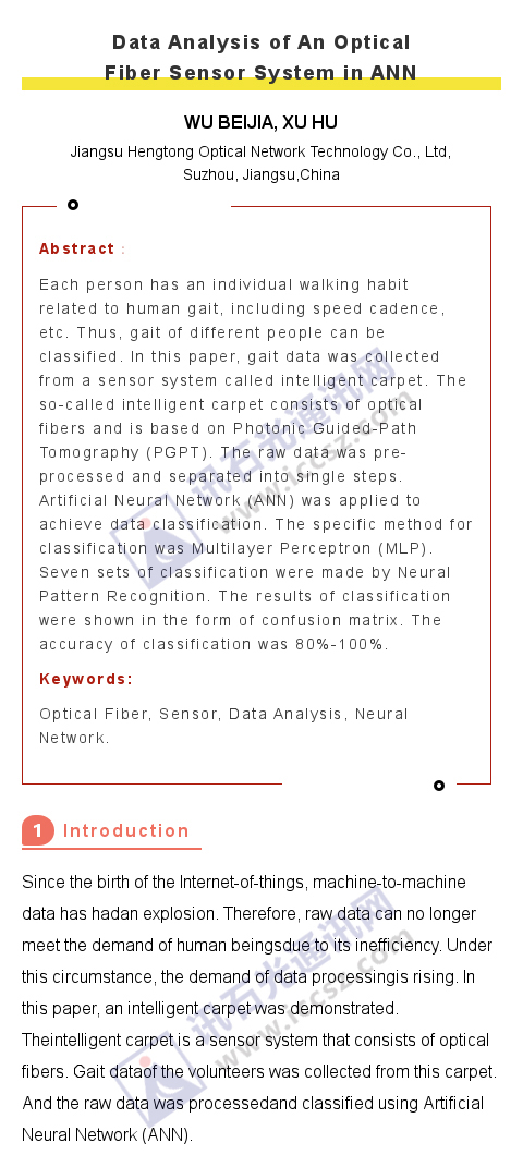 2018訊石期刊 | Data Analysis of An Optical Fiber Sensor System in ANN