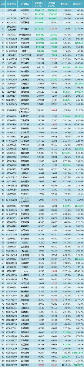2.綠字為各維度的前十名,紅字表示營業(yè)收入或凈利潤為負(fù)值。