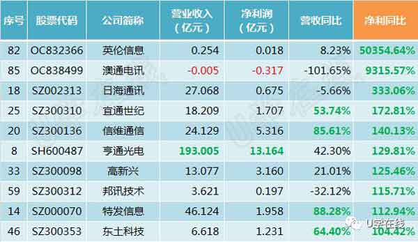 可以看到,宜通世紀(jì)、信維通信、特發(fā)信息、東土科技2016年?duì)I收和凈利潤都實(shí)現(xiàn)較好增長,營收同比和凈利潤同比均排在前十名以內(nèi)。
