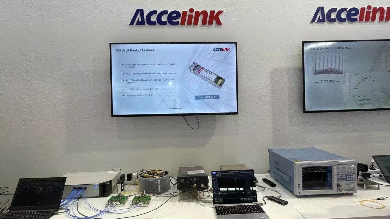 張總為我們介紹,本次參展光迅科技主要展出了四大解決方案:無線接入、數(shù)據(jù)通信、高速傳輸和光纖到戶。其中無線解決方案主要聚焦于國內(nèi)5G建設,為客戶提供各種場景下的前傳解決方案;數(shù)通則提供200G/400G/800G等全系列高速產(chǎn)品;高速傳輸產(chǎn)品提供各類有源和無源產(chǎn)品,聚焦于2.0全光網(wǎng)絡場景;光纖到戶聚焦于FTTH應用場景,提供高性價比的局端和終端光器件產(chǎn)品。