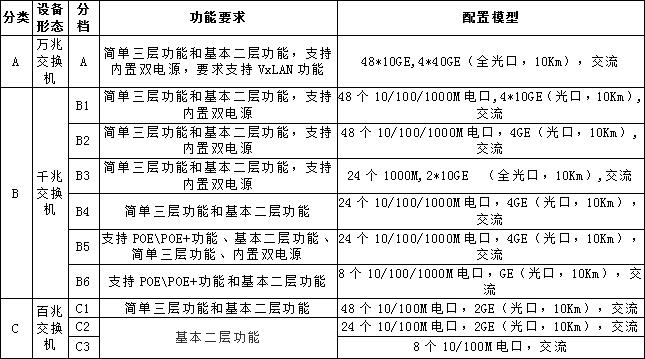 表5:中低端交換機(jī)設(shè)備技術(shù)要求和產(chǎn)品規(guī)格