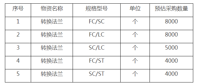 ICCSZ訊 (編輯:Nicole)新疆移動啟動2020-2021年光纖連接器(光法蘭)集采,總需求量達(dá)6萬個,項(xiàng)目預(yù)算為不含稅280萬元(含稅316.4萬元),規(guī)定的中標(biāo)人數(shù)量為2個,份額依次為70%和30%。