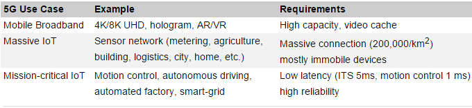 例如一個大規(guī)模物聯(lián)網(wǎng)服務連接固定傳感器測量溫度、濕度、降雨量等。不需要移動網(wǎng)絡中那些主要服務手機的切換、位置更新等特性。另外像自動駕駛以及遠程控制機器人等任務關(guān)鍵的物聯(lián)網(wǎng)服務需要幾毫秒的端到端延時,這就和移動寬帶業(yè)務大不相同。