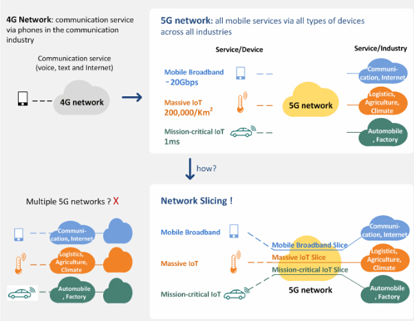 這個新技術(shù)可以讓運營商在一個硬件基礎(chǔ)設(shè)施切分出多個虛擬的端到端網(wǎng)絡,每個網(wǎng)絡切片從設(shè)備到接入網(wǎng)到傳輸網(wǎng)再到核心網(wǎng)在邏輯上隔離,適配各種類型服務的不同特征需求。