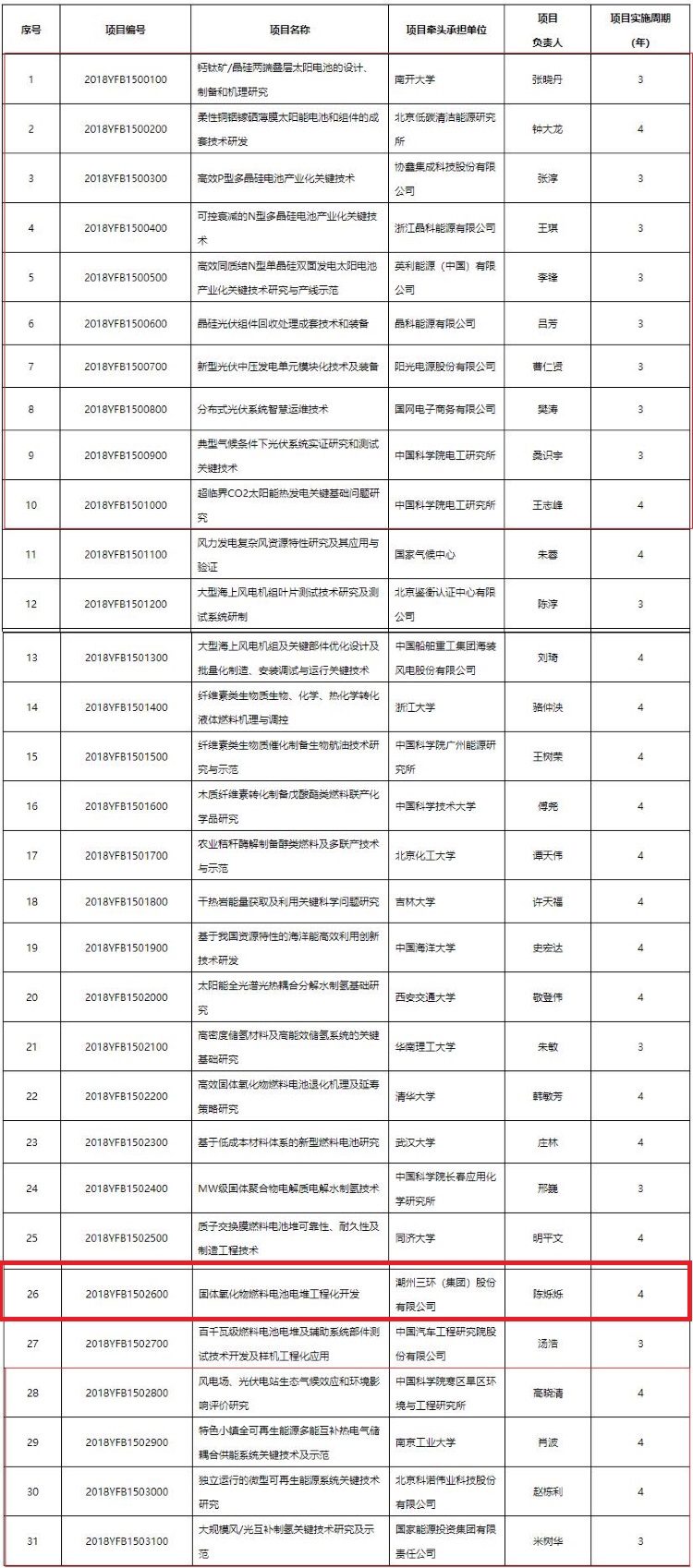 科技部高技術研究發(fā)展中心印發(fā)關于國家重點研發(fā)計劃“可再生能源與氫能技術”重點專項2018年度項目安排公示如下: