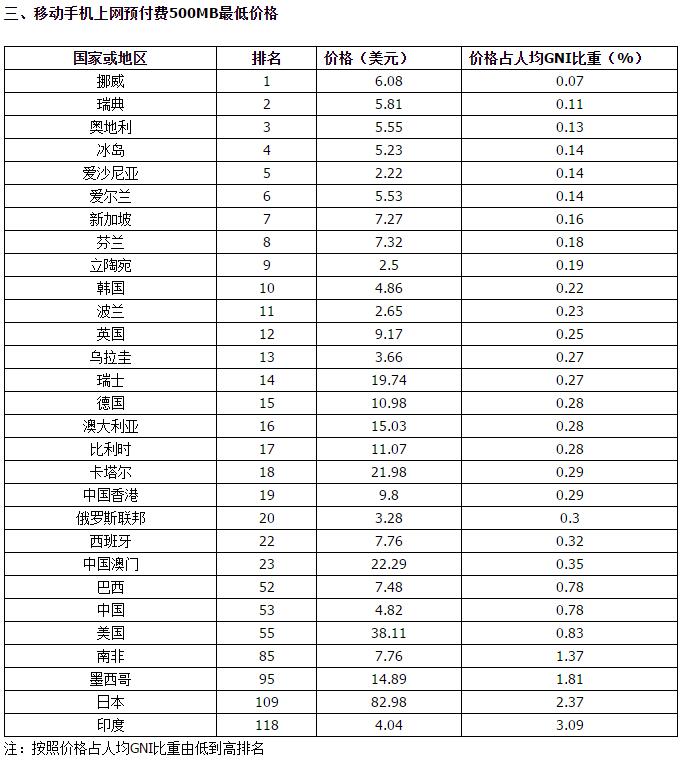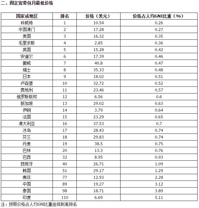從排名情況看,我國整體資費水平處于全球中低水平陣營,IPB指數(shù)基本反映了我國情況,與我國經(jīng)濟發(fā)展水平基本相適應(yīng),適度超前。從數(shù)據(jù)準確性來看,客觀來講,由于國際電聯(lián)制定IPB指數(shù)需要統(tǒng)籌兼顧發(fā)達國家和發(fā)展中國家之間不同的社會和經(jīng)濟發(fā)展水平,綜合考慮各方面因素,因此具有一定局限性,在一定程度上高估了我國用戶ICT服務(wù)真實負擔程度。具體來說,ITU在采集各國ICT服務(wù)價格數(shù)據(jù)時,選取的代表性城市是各國人口規(guī)模最大的城市或首都,在我國選的是首都北京。與發(fā)達國家或者國土面積比較小的國家國內(nèi)各個城市經(jīng)濟發(fā)展差距不大的情況不同,我國幅員遼闊,人口眾多,區(qū)域之間、城鄉(xiāng)之間發(fā)展水平差距很大,北京的人均GNI和ICT服務(wù)價格都明顯高于全國平均水平。