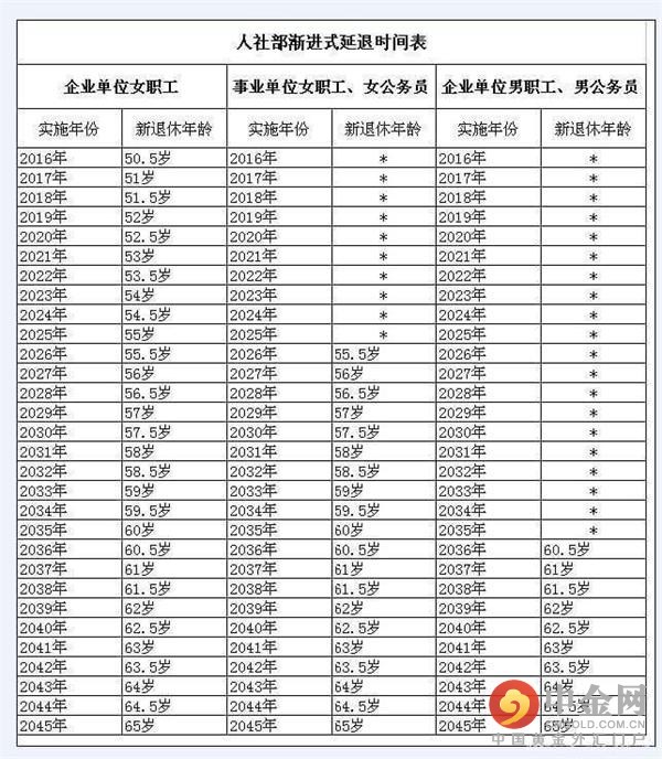 漸進(jìn)式延遲退休年齡時(shí)間表