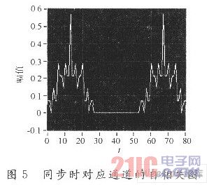 根據(jù)系統(tǒng)原理,當信道的相應(yīng)延時來到時,有尖銳的自相關(guān)出現(xiàn),如圖5所示。對于其他通道,相同時刻的相關(guān)值很小。由此可以準確地對相應(yīng)的傳感光柵進行定位,即尋址。