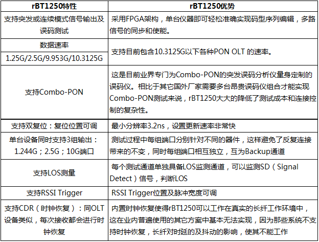 目前也有一些用戶采用OLT設(shè)備進(jìn)行測(cè)試突發(fā)測(cè)試,但是不同廠家的OLT設(shè)備時(shí)序不一樣,其結(jié)果是大批量生產(chǎn)的OLT模塊需要在不同廠家OLT設(shè)備進(jìn)行驗(yàn)證,這也造成了生產(chǎn)成本的提高。聯(lián)訊儀器rBT1250是一臺(tái)通用的測(cè)試儀表,它可以模擬不同的設(shè)備突發(fā)時(shí)序,這極大地方便了大批量生產(chǎn)的OLT模塊測(cè)試的靈活性。