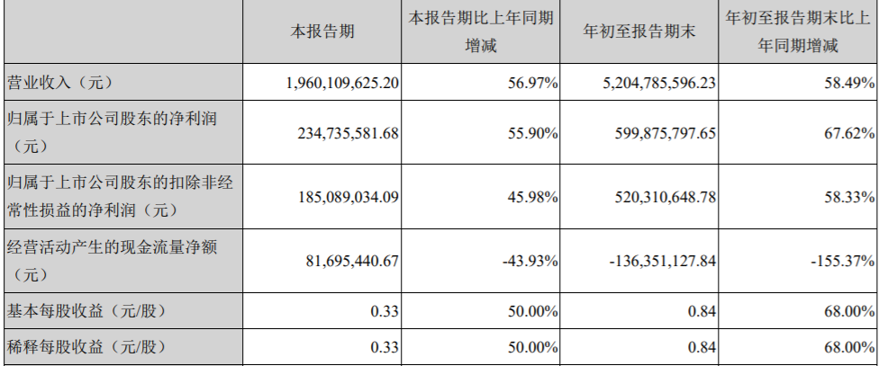 ICC訊(編輯:Aiur) 10月28日晚間,中際旭創(chuàng)股份有限公司(簡(jiǎn)稱中際旭創(chuàng))發(fā)布2020年第三季度報(bào)告,報(bào)告期內(nèi)實(shí)現(xiàn)營(yíng)業(yè)收入約19.6億元,同比增長(zhǎng)56.97%,凈利潤(rùn)約2.35億元,同比增長(zhǎng)55.9%。2020年前三季度,中際旭創(chuàng)累計(jì)完成營(yíng)業(yè)收入約52.05億元,同比增長(zhǎng)58.49%,凈利潤(rùn)約6億元,同比增長(zhǎng)67.62%。