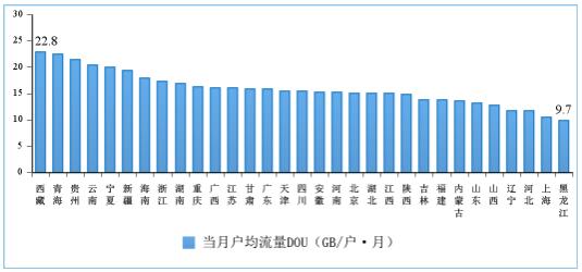 圖:2022年4月份移動互聯(lián)網(wǎng)戶均流量(DOU)各省情況