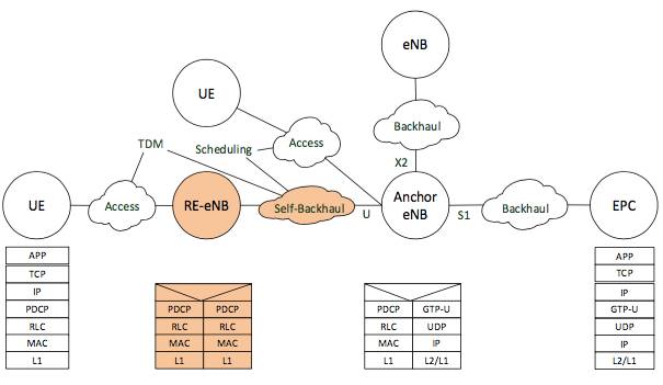 關(guān)于自回傳(Self-Backhauling)概念在LTE協(xié)議中已有,它利用LTE無線資源在eNB之間實(shí)現(xiàn)基于層三的點(diǎn)對(duì)點(diǎn)中繼,要求中繼eNB和錨定eNB之間協(xié)作調(diào)度。