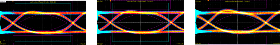850nm 車載光通訊10G VCSEL芯片在不同溫度下的眼圖(a)25℃ (b)85℃ (c)125 ℃