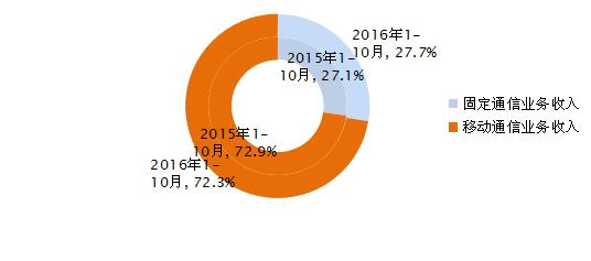 圖9 2016年1-10月電信業(yè)務收入結構占比情況(固定和移動)