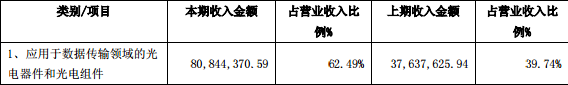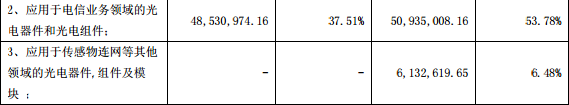 公司光器件、組件及模塊產(chǎn)品應(yīng)用于數(shù)據(jù)傳輸、電信業(yè)務(wù)和傳感連網(wǎng)三大領(lǐng)域,其收入結(jié)構(gòu)變動(dòng)主要原因有以下3點(diǎn):