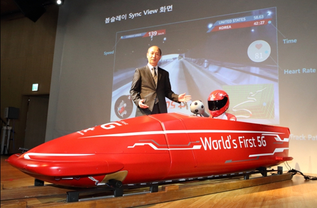 圖:KT網(wǎng)絡(luò)部門副總裁Oh Sung-mok展示5G技術(shù)發(fā)展成果