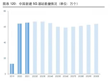 五礦證卷認為,中國方面,目前中國已建成全球最大規(guī)模的5G商用網(wǎng)絡,在5G標準、建設、應用等領域處于全球領先地位,疊加政策等支持,有望率先展開建設,迎來建設高峰期,預計至 2030年中國累計建有5G基站708萬個。