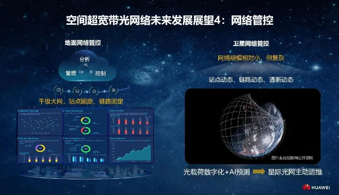 地面已經(jīng)有成熟的網(wǎng)絡(luò)管控技術(shù),實(shí)現(xiàn)對千級大網(wǎng)的分析、管理、控制。衛(wèi)星網(wǎng)絡(luò)雖然規(guī)模不及地面網(wǎng)絡(luò)大,但與地面網(wǎng)絡(luò)站點(diǎn)和鏈路相對固定不同,站點(diǎn)動(dòng)態(tài)、鏈路動(dòng)態(tài)、通斷動(dòng)態(tài)導(dǎo)致對其的管理變得復(fù)雜。基于地面網(wǎng)絡(luò)管控技術(shù)積累的基礎(chǔ)上,需做到光載荷數(shù)字化及AI預(yù)測,實(shí)現(xiàn)星際光主動(dòng)運(yùn)維,包括:常規(guī)通道支持業(yè)務(wù)功能的配置、故障自動(dòng)上報(bào)、性能實(shí)時(shí)監(jiān)控、光載荷重構(gòu)、采集在軌數(shù)據(jù),逃生通道支持通用遙測指令、常規(guī)遙測、工程遙測等。