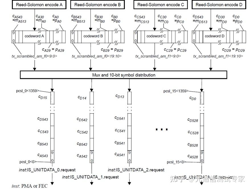 技術(shù)核心:符號(hào)復(fù)用不再是以“位”為單位進(jìn)行簡單的物理疊加,而是要求PMA能夠識(shí)別RS-FEC(前向糾錯(cuò))的符號(hào)邊界(通常為10位一個(gè)符號(hào))。映射模式:針對(duì)1.6T以太網(wǎng),標(biāo)準(zhǔn)定義了符號(hào)四元組復(fù)用(Symbol-quartet Multiplexing),將來自不同F(xiàn)EC碼字的相鄰10位符號(hào)組成40位的四元組進(jìn)行處理。實(shí)現(xiàn)前提:該技術(shù)依賴于精確的*對(duì)齊標(biāo)記(Alignment Markers)鎖定和去偏(Deskew)*過程,以確保各條PCS通道在進(jìn)入復(fù)用器前已完成邊界對(duì)齊。