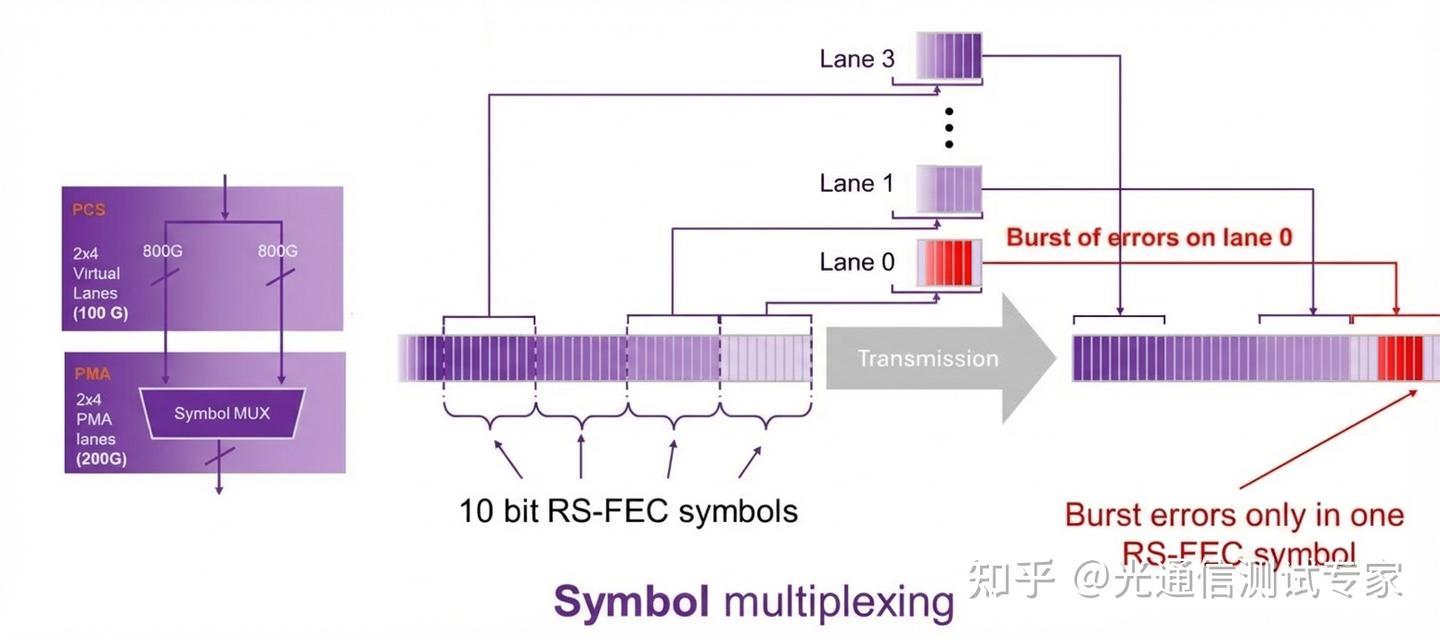 符號(hào)復(fù)用的引入主要是為了解決單通道200G速率下“突發(fā)錯(cuò)誤(Burst Errors)”對(duì)糾錯(cuò)能力的威脅。