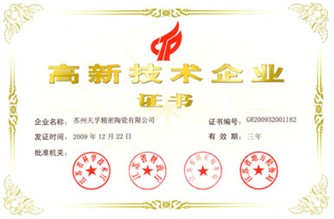 摘要:日前,江蘇省2009年度第四批高新技術(shù)企業(yè)名單正式公布,蘇州天孚精密陶瓷榜上有名。進(jìn)入2010年以來,蘇州天孚屢獲佳績,是對其綜合實(shí)力的肯定與認(rèn)同。