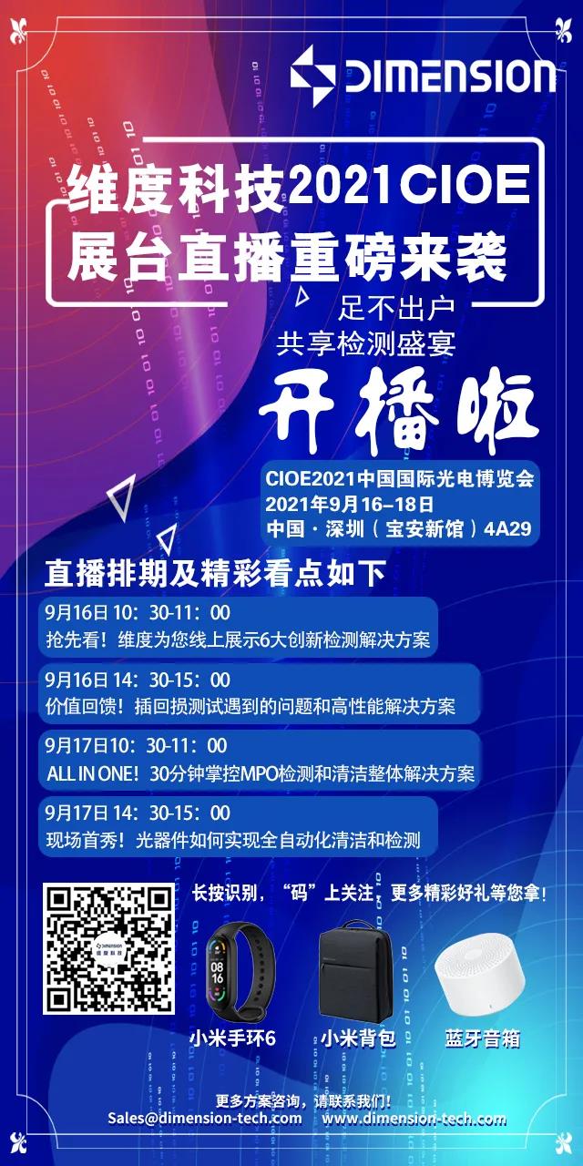 摘要:CIOE 2021深圳光博會,維度科技將在微信視頻號為您現(xiàn)場直播啦,期間更有福利大放送哦,歡迎大家捧場!