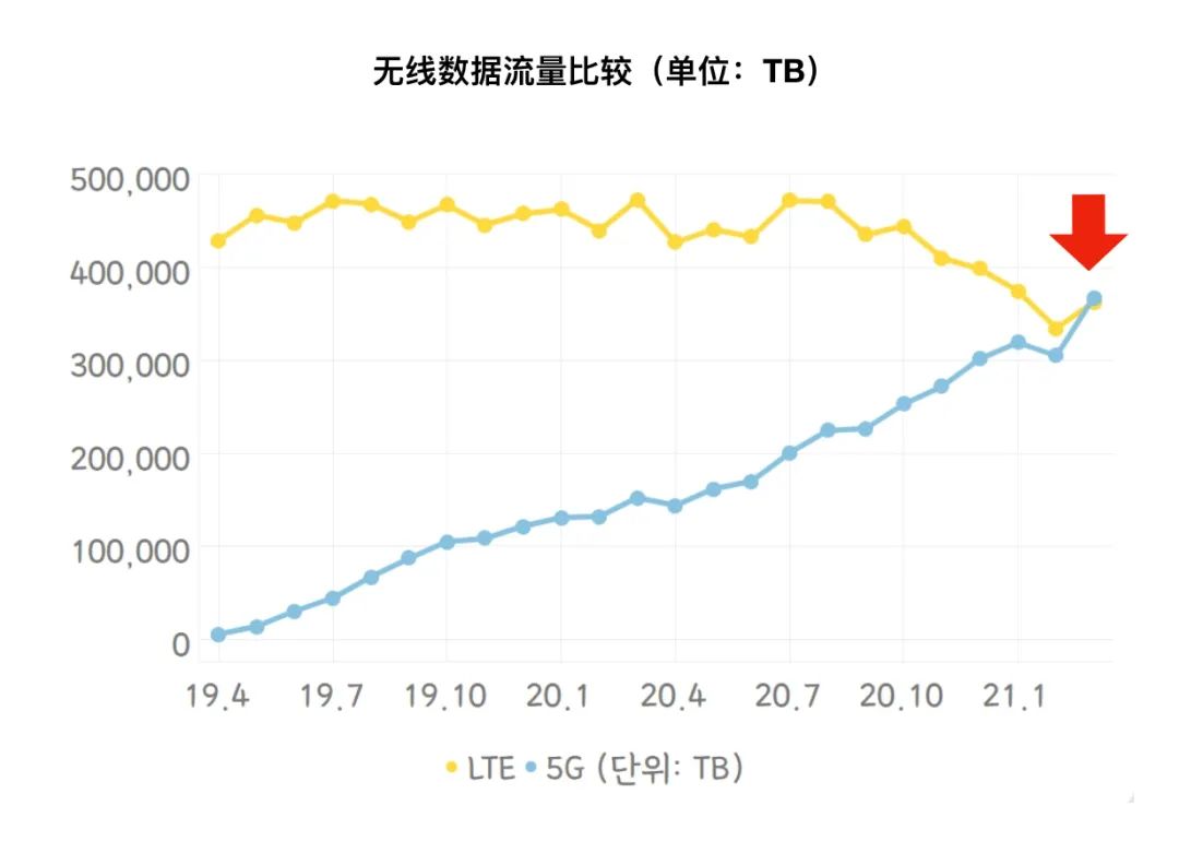 可以這么講,韓國(guó)5G商用兩年后已迎來(lái)關(guān)鍵交叉點(diǎn),一邊是5G網(wǎng)絡(luò)流量不斷攀升并超過(guò)4G,一邊是4G網(wǎng)絡(luò)流量逐漸下降。