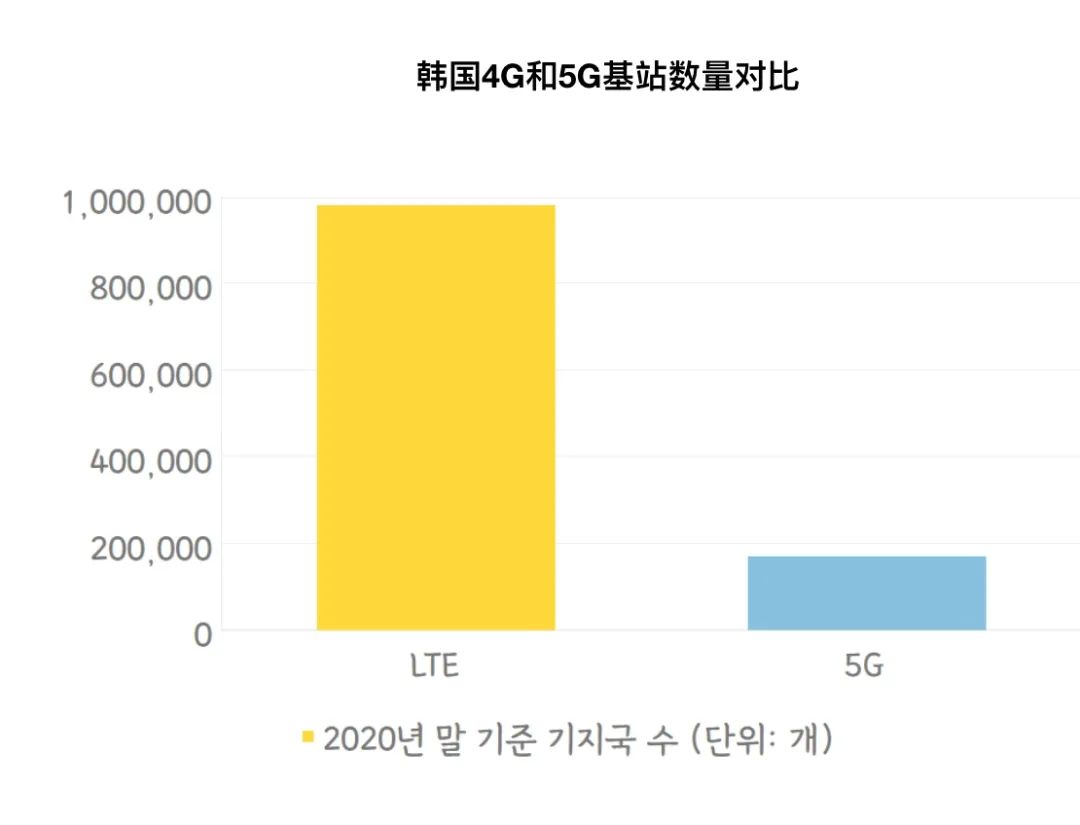 韓國(guó)媒體將此歸咎于5G網(wǎng)絡(luò)覆蓋和質(zhì)量發(fā)展緩慢。在網(wǎng)絡(luò)規(guī)模方面,截至去年年底,韓國(guó)三大運(yùn)營(yíng)商已建成5G基站數(shù)量約17萬(wàn)個(gè),4G基站數(shù)量約98萬(wàn)個(gè)。考慮5G頻段更高,單站覆蓋能力更弱,這意味著韓國(guó)5G網(wǎng)絡(luò)覆蓋還遠(yuǎn)遠(yuǎn)低于4G。