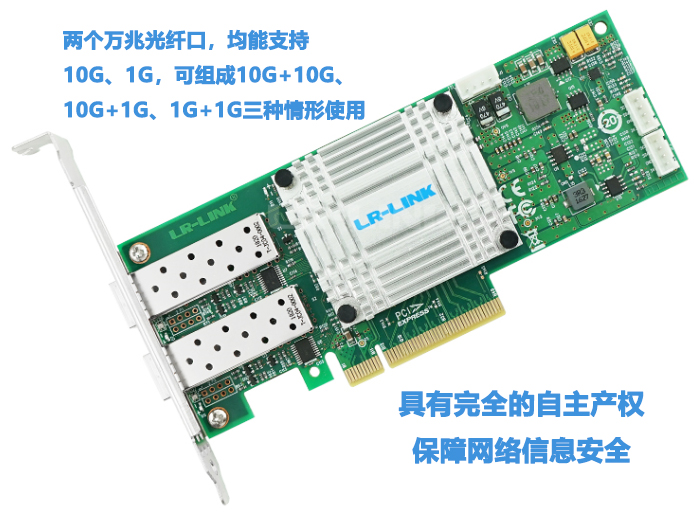 聯(lián)瑞LRES1002PF-2SFP+國產的具有自主知識產權的萬兆以太網(wǎng)卡,在速率支持上可靈活地按實際使用需求采用10G+10G、10G+1G、1G+1G等三種速率進行工作,滿足更多的使用需求。同時還可以兼容市面上幾乎所有的光纖模塊使用,具有廣泛的兼容性。