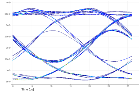 關(guān)于帶NRZ-OOK信號系統(tǒng)的CWDM光收發(fā)器,通過pSim仿真可得到如圖所示結(jié)果。傳輸距離為2km后,結(jié)果表明眼圖是開放和清晰的。細節(jié)的自定義器件的操作方法、參數(shù)以及仿真設(shè)置在「基于pSim的硅基光電子集成鏈路設(shè)計」教程中都有詳述,在此不贅述。