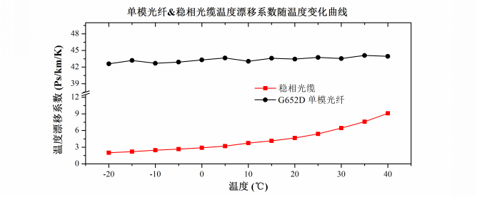 圖 2 單模光纖及穩(wěn)相光纜溫度漂移系數(shù)隨溫度變化情況