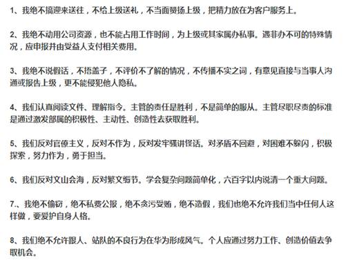 公司培養(yǎng)一個干部很不容易,常務(wù)董事會研究處理干部,每次給我匯報時,我都很痛心。其實通過努力為公司作出貢獻(xiàn)而獲得的利益更大,華為總體待遇不低,高級干部的待遇收入更高。為了一點(diǎn)小小利益去做不正確的事,不值得!對干部的離任和在任審計,其實就是在關(guān)懷愛護(hù)干部,讓干部至少不要把壞事做大了。惹大了事,坐牢不舒服,就地司法制度改革后會更痛苦,國外的牢坐得更不舒服。