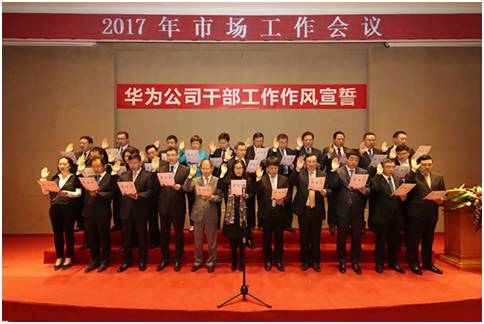 而在2017年1月11日上午9:00,華為還在深圳坂田基地召開干部工作作風(fēng)宣誓大會,此前多年華為都有高管、董事等進(jìn)行宣誓大會的傳統(tǒng)。