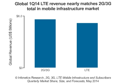 ICCSZ訊 近日,市場調研公司Infonetics發(fā)布其最新的2014年一季度關于2G/3G和LTE市場報告。