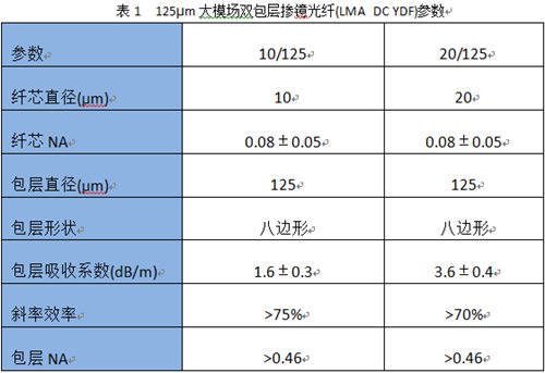 125μm大模場雙包層摻鐿光纖包含以下兩種型號: