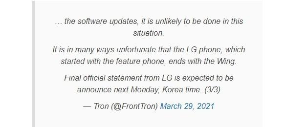 據(jù)報(bào)道,LG不是完全退出手機(jī)市場,并且極有可能承諾繼續(xù)支持現(xiàn)有的手機(jī)。但是,爆料者懷疑LG是否能夠真正兌現(xiàn)這一承諾,這意味著即使在那些仍處于支持范圍內(nèi)的手機(jī),LG也將無法進(jìn)行更新。