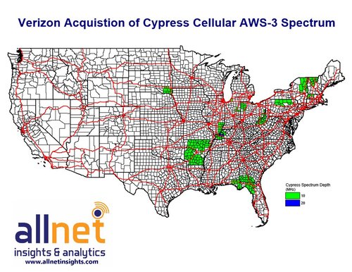 頻譜跟蹤公司AllNet Insights&Analytics的創(chuàng)始人Brian Goemmer首先強(qiáng)調(diào)了運(yùn)營商的最新頻譜協(xié)議。 Verizon表示,它將從一個(gè)名為Cypress Cellular處購買40個(gè)AWS-3許可證。